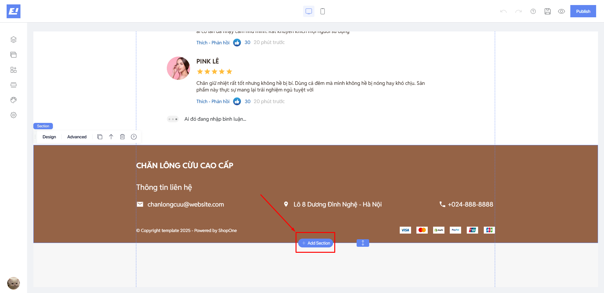 * **Styles:** Allows you to change the background color and shadow effects of the selected section, see details [**here**](https://docs.shopone.io/english/basic-setup-tools-for-the-landing-page/quick-setup-bar/design-editor/styles).