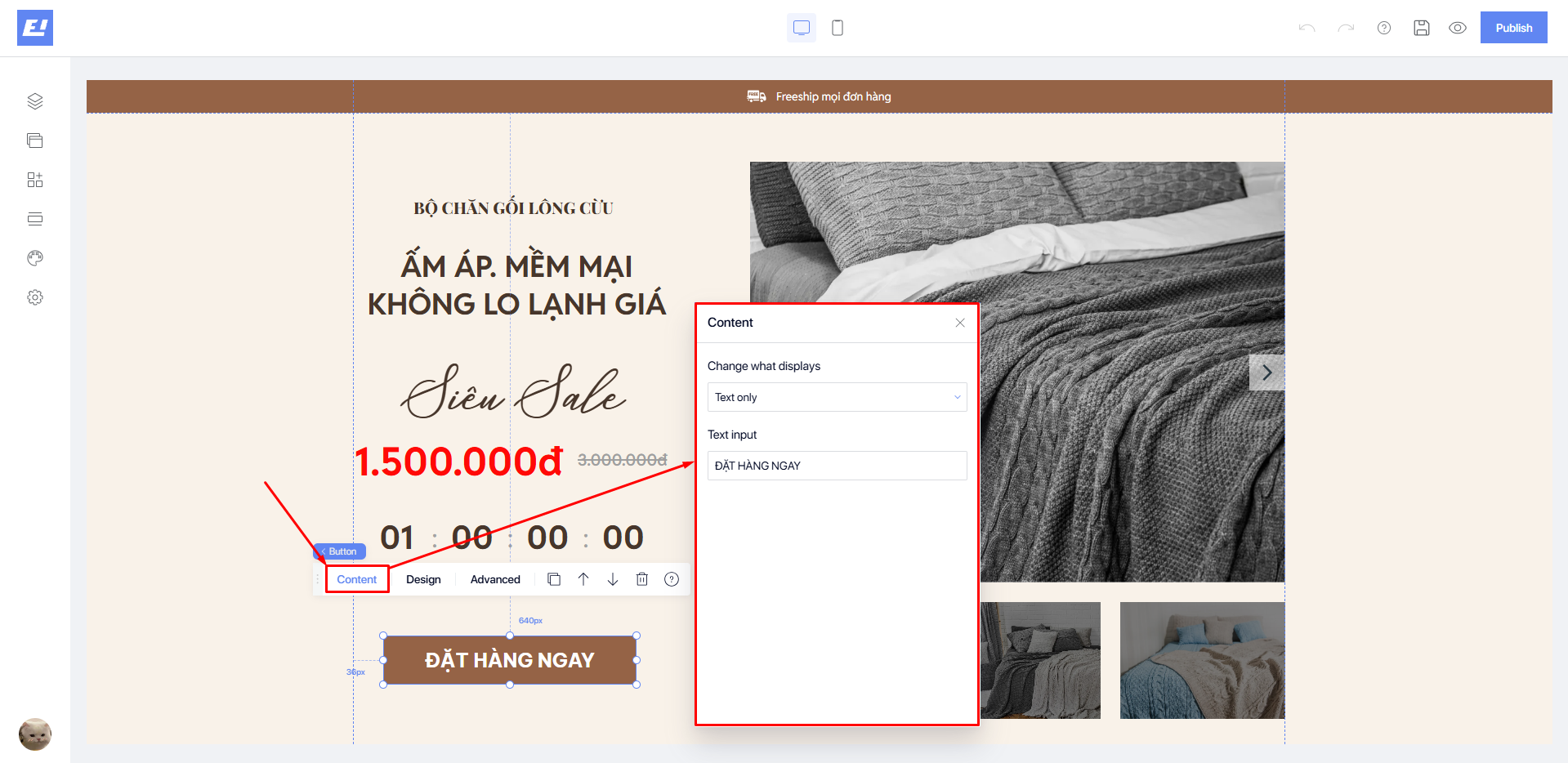 The **content editor** for each widget allows you to perform quick edits, from changing text and updating images to inserting links for buttons or adjusting settings for videos. This flexibility makes the process of building and optimizing your website more manageable, enabling you to take full control of the content without complex operations.