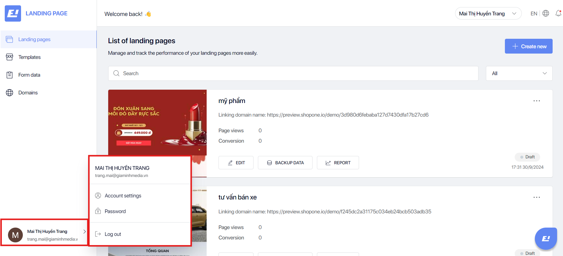 Click on the Account icon in the left navigation bar to perform actions related to your account.