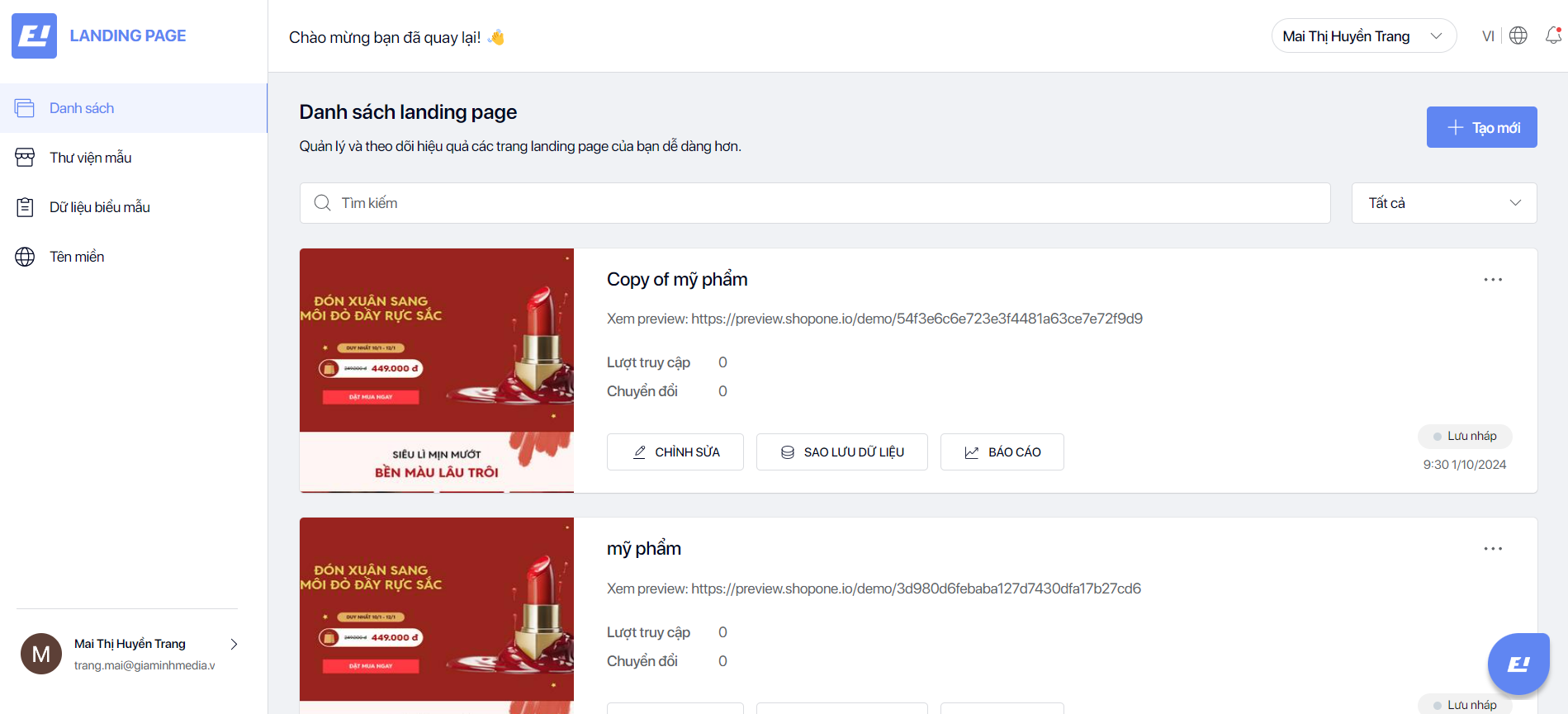 Sau khi nhân bản landing page, bạn có thể chỉnh sửa 1 landing page với giao diện y hệt landing page được nhân bản.